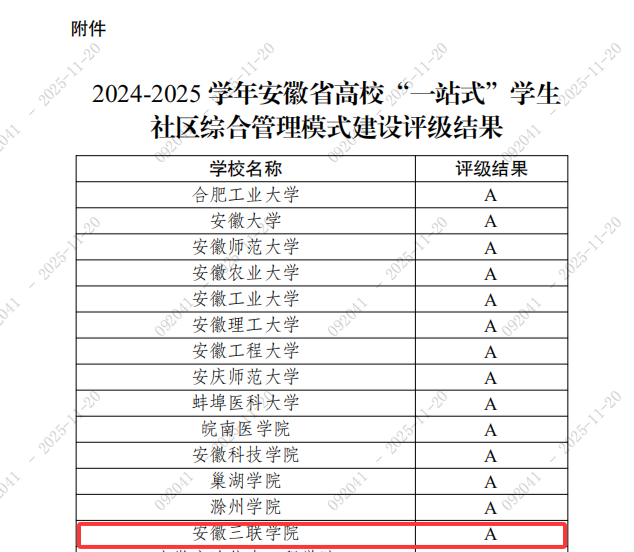 近日,安徽省委教育工委公布2024-2025学年高校“一站式”学生社区综合管理模式建设验收评估结果。经学校自评、专家评审、实地核查、评委会审议等环节,我校成功获评A级。