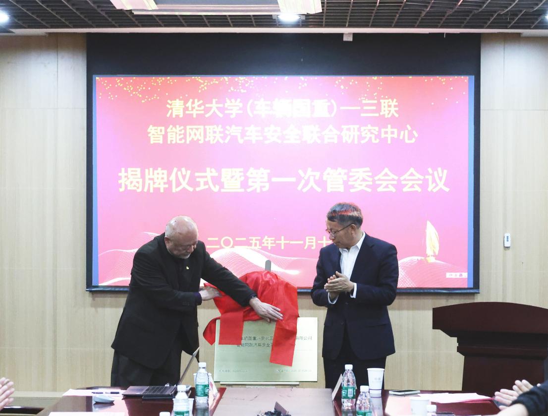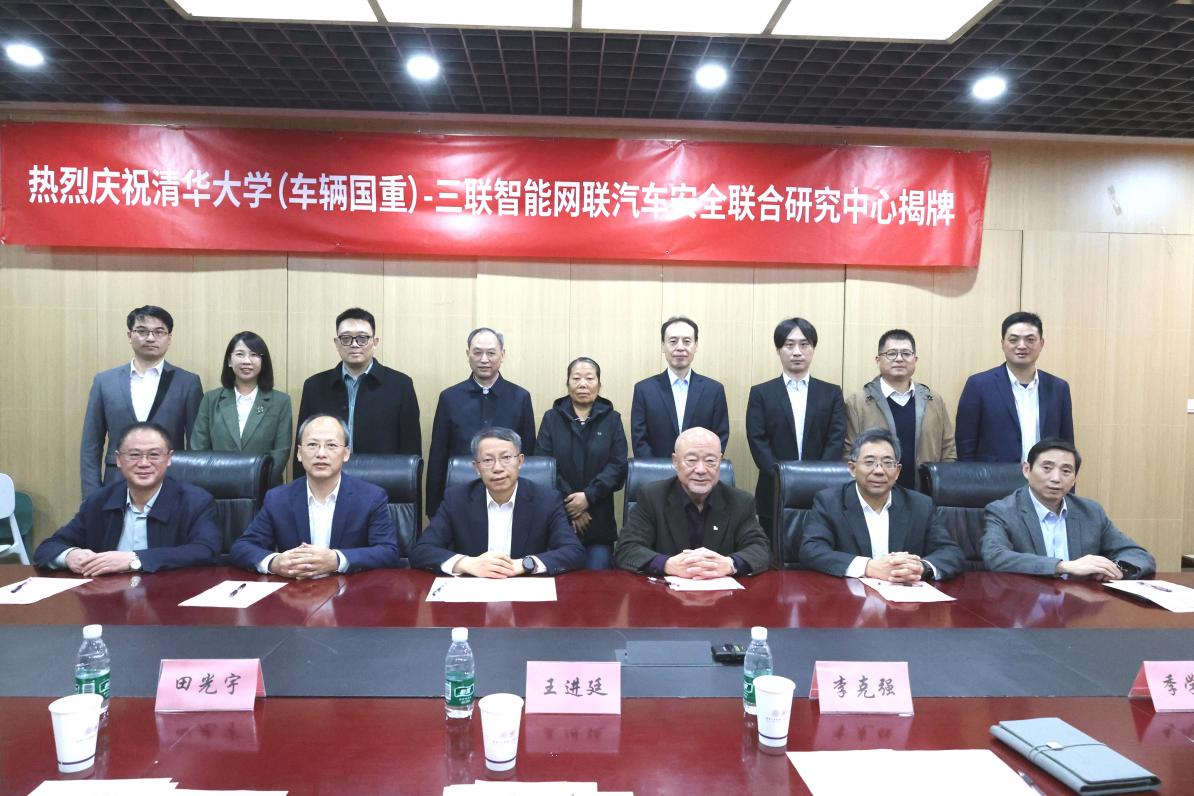2025年11月15日,清华大学、安徽三联集团及安徽三联学院共建的“清华大学(车辆国重)-三联智能网联汽车安全联合研究中心”(简称“中心”)揭牌仪式暨第一次管委会会议在清华大学李兆基大楼举行。清华大学国重管理中心副主任王进廷出席会议并致辞,中国工程院院士、清华大学车辆国重主任、中心管委会主任李克强,三联创始人、中心首席科学家金会庆,安徽三联集团董事长、安徽三联学院董事长余皖生,中心主任季学武,中心副主任张树林、高博麟以及中心核心成员等出席会议。会议由清华大学车辆与运载学院院长助理张静一主持。