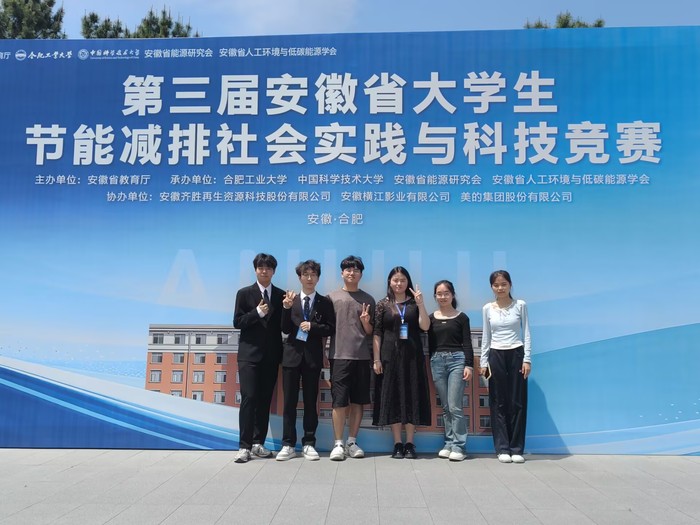 本次竞赛由安徽省教育厅主办,旨在增强高校学生的节能环保意识与科技创新能力,助力国家“双碳”战略目标,吸引了全省40余所高校千余件作品参赛,经大赛组委会网络函评及会议遴选,最终218件作品晋级决赛。其中我校一组参赛团队凭借扎实的研究基础和富有创意的技术方案,在众多参赛作品中脱颖而出成功闯入决赛并荣获省级二等奖。